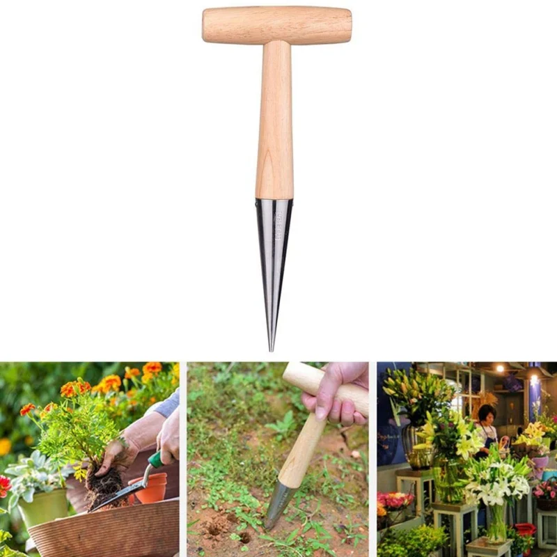 ORIGINAL Soil Puncher With Wood Handle Portable Outdoor Punching Hole Tool Garden Supplies Planting Flowers